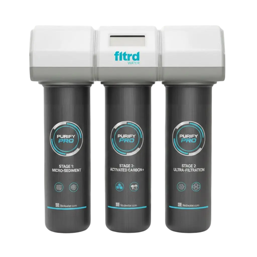 3-stage wall-mounted filtration for homes, rentals, and hospitality — no app, no electricity.